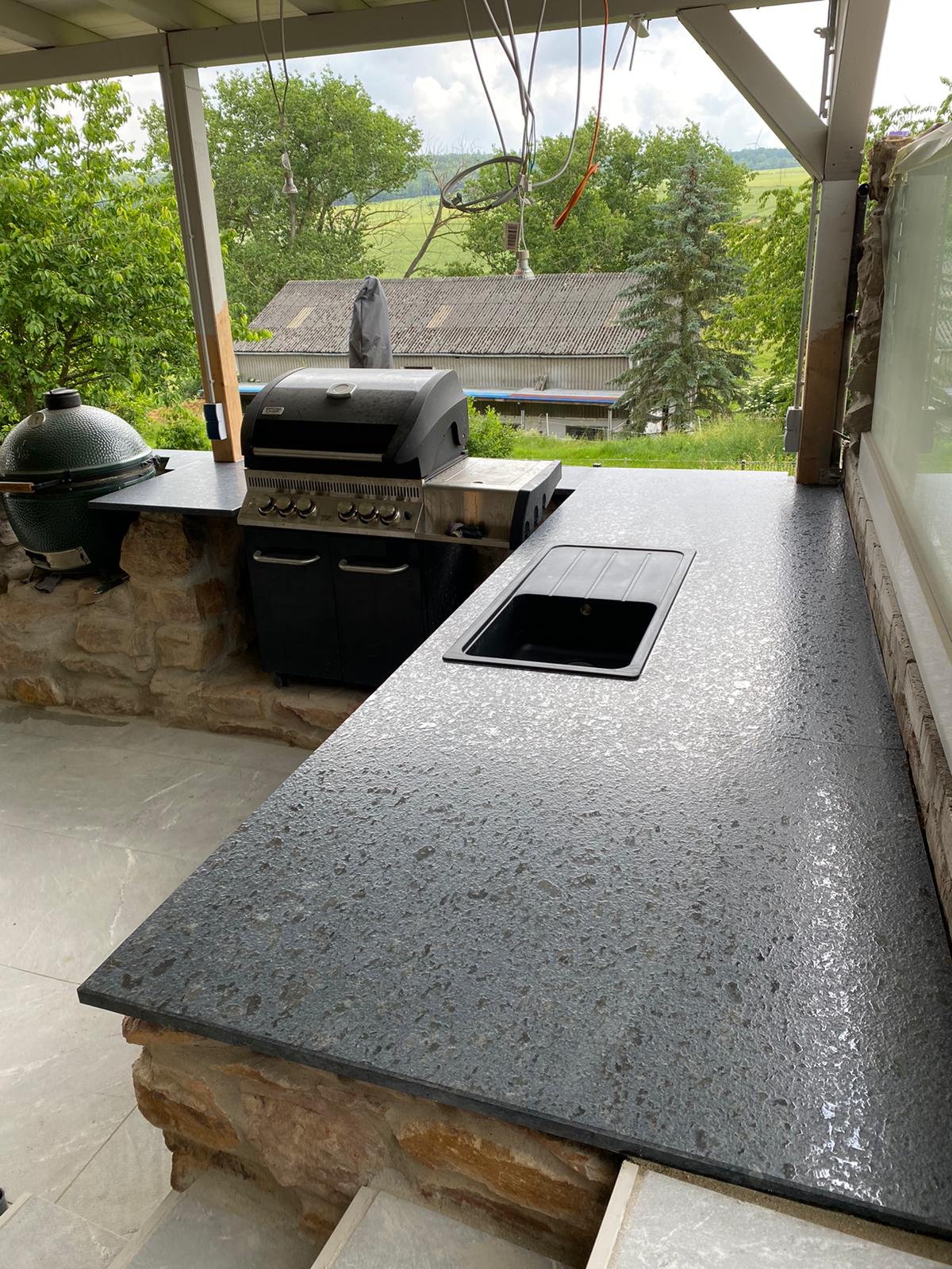 Genießen Sie den Luxus einer Outdoor Küche und verbringen Sie den Sommer im Garten. Verlegen Sie das Kochen ins Freie mit einer Outdoorküche, die alle Ihre Wünsche erfüllt. Teil einer Outdoor Küche kann nicht nur der klassische Grill sein, auch mit weiteren Elementen wie einem Seitenbrenner, einem Pizzaofen oder einem Kamado-Grill zaubern Sie kulinarische Köstlichkeiten in Ihrem Außenbereich. Planen und bauen Sie Ihre Outdoor Küche nach Ihren eigenen Vorstellungen. Wir fertigen Ihnen die dazu passenden Arbeitsplatten, -flächen auf Maß, nach Ihren Vorgaben aus Granit in Ihrer Wunschoberfläche