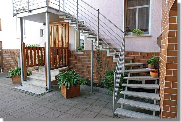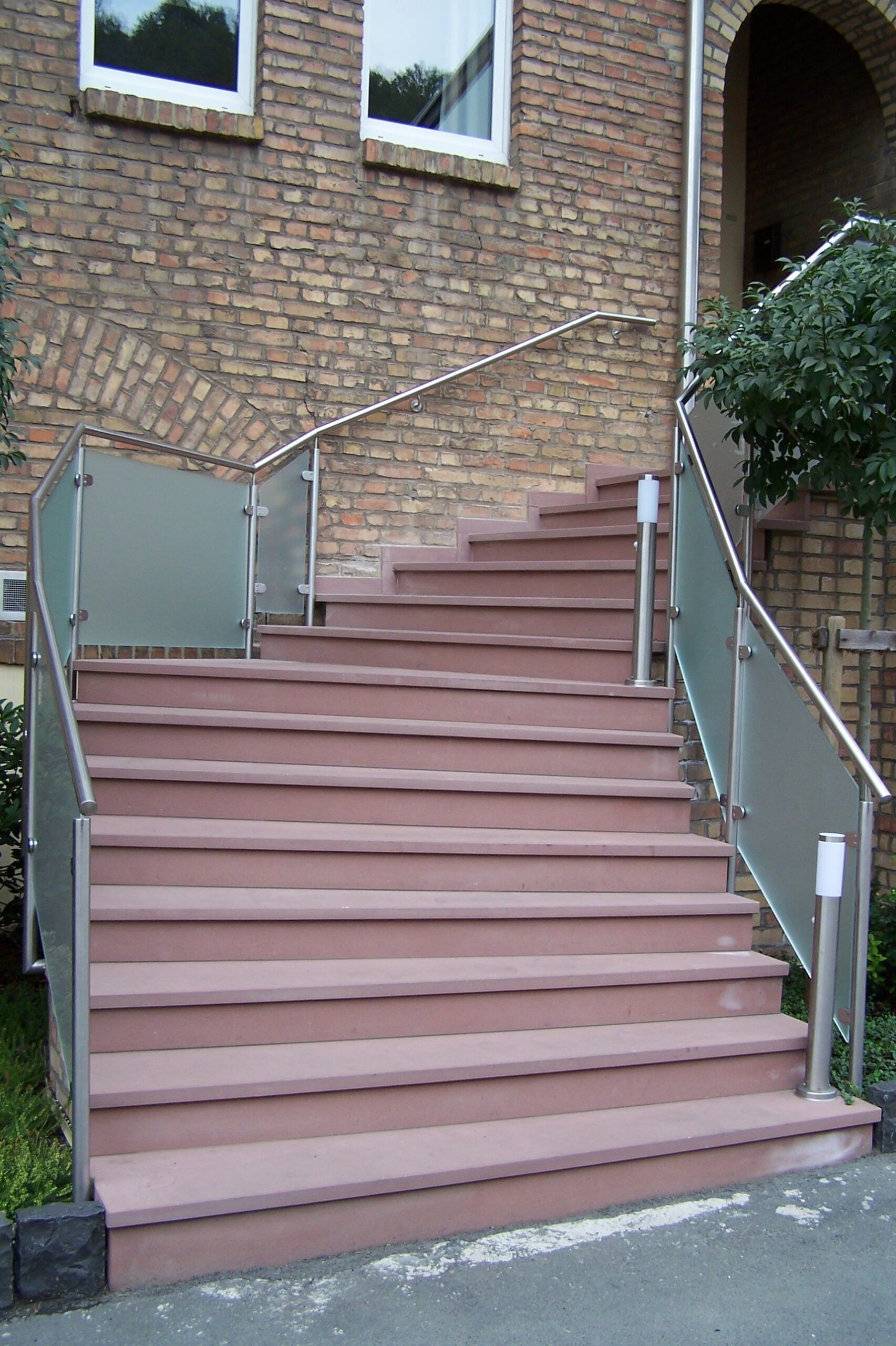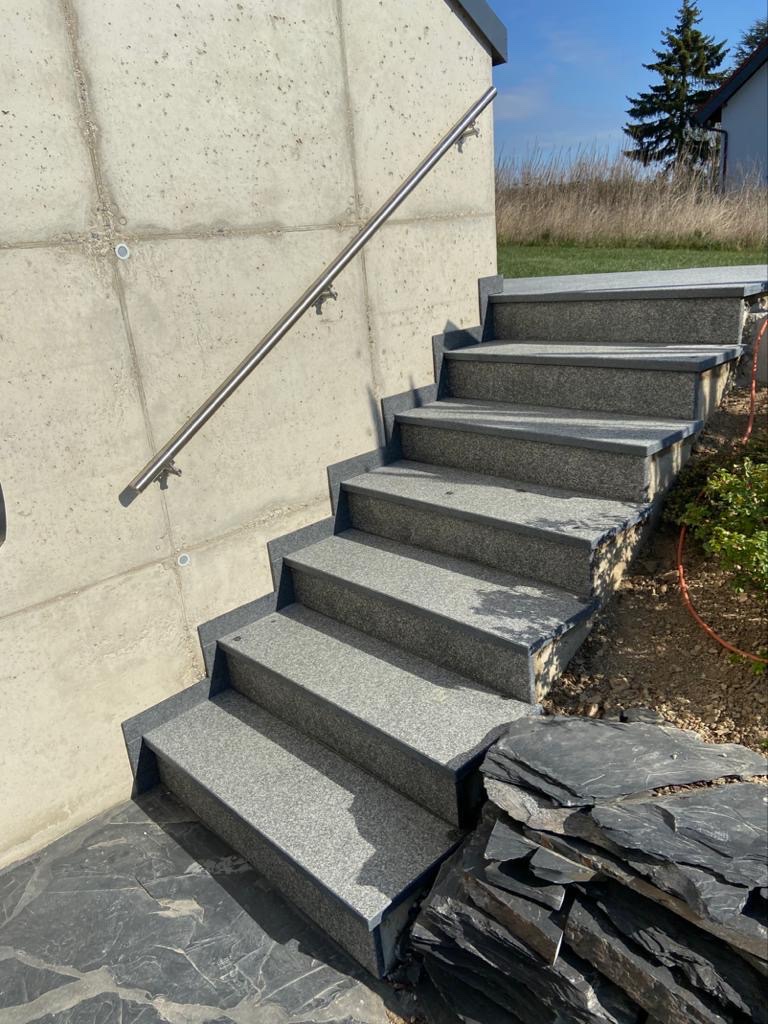 Natürlich ist Stein auch ein ideales Material für den Treppenbau. Insbesondere im Außenbereich zeigen sich die Vorteile. Stein ist stabil, sieht gut aus und muss nicht wie Holz immer wieder behandelt werden. Aus der Kombination mit Edelstahl ergibt sich eine optisch sehr ansprechende Gestaltungsmöglichkeit.