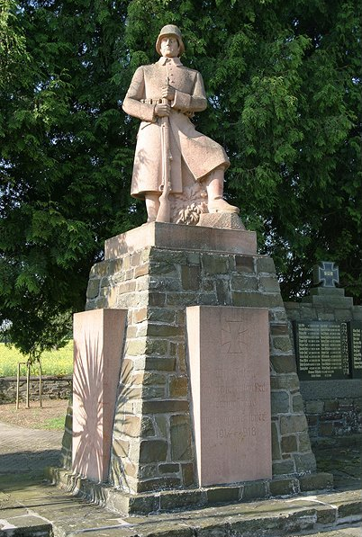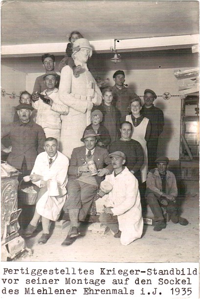 Der Bildhauer Hermann Kornmesser erstellt für den Steinmetzbetrieb Alois Mitter einen Soldaten, der heute noch auf dem Miehlener Friedhof steht.